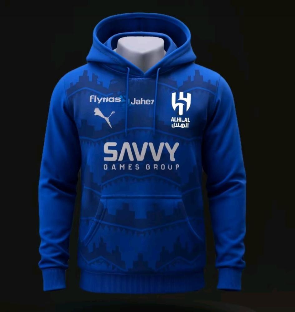 يأتي البلوفر بتدرجات اللون الأزرق المميزة وغطاء رأس عملي، مما يجعله الخيار المثالي للمشجعين الصغار من عمر 6 إلى 13 سنة في كل مناسبة رياضية أو يومية.