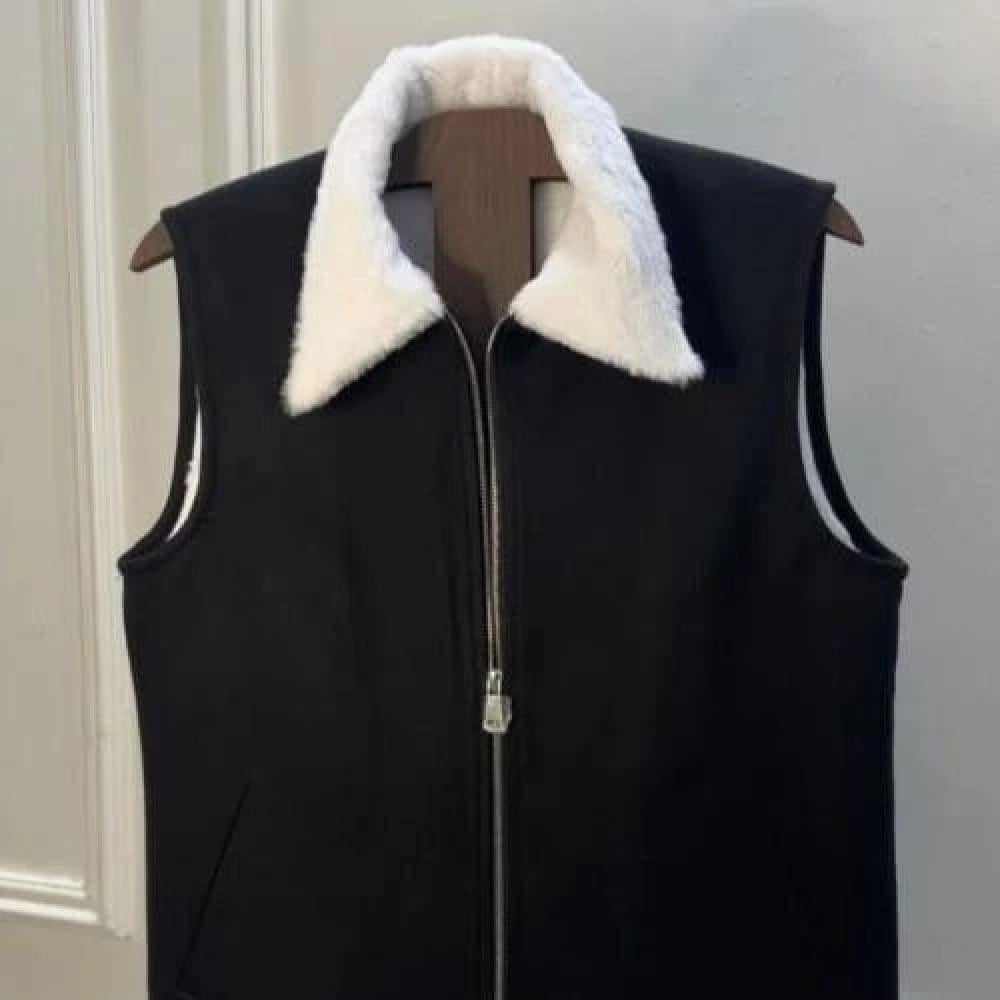 سديري شتوي اسود شريط سحاب .قلاب من داخل فرو