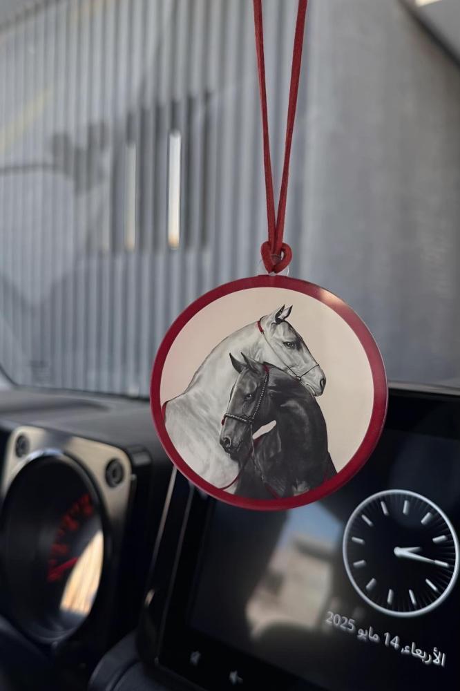 تعليقة فاخرة بتصميم خيول عربية أصيلة، تضيف لمسة راقية وأناقة كلاسيكية لسيارتك. مصنوعة بجودة عالية ولمسة فنية مميزة، مثالية لعشاق الخيل والذوق الرفيع.