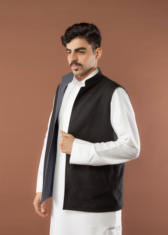 سديري دبل فيس جوخ يجمع بين الدفا والأناقة بتصميم عملي ينلبس من الجهتين. خامة جوخ فاخرة تحفظ الحرارة وتعطي شكل كلاسيكي راقي يناسب الشتاء. مثالي للطلعات اليومية وللي يحبون القطع المميزة اللي تعيش.