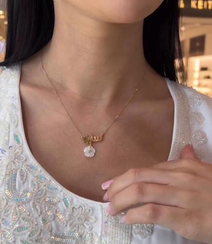 المعدن: فضة 925 مطلي ذهب 18 قيراطالحجر: الزيركون شبيه الألماسالطلاء : روديوم أصليطول السلسلة: 45 سمنقش الاسماء ليزري مجاني ثابت مدى الحياةالعلامة التجارية: مجوهرات متجر ميسون