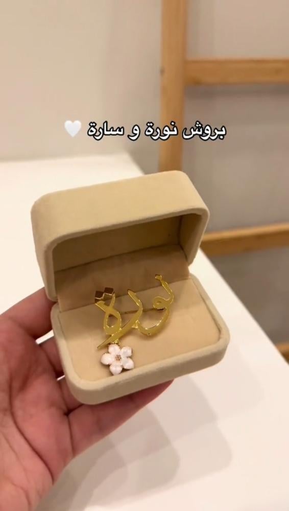 بروش بالاسم مع ورده مطلي بالذهب او الفضة - متجر ميسون