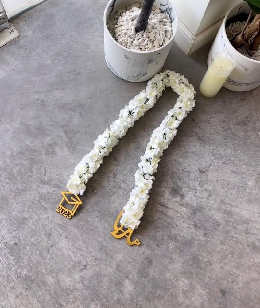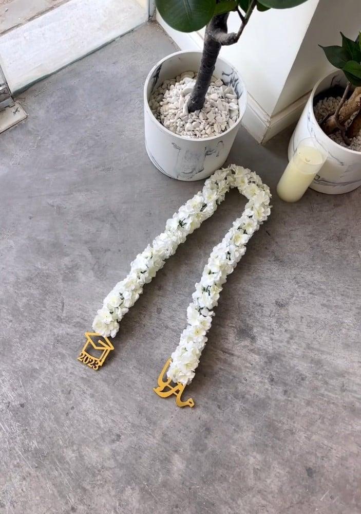 عقد تخرج أنيق مزين بالورد والاسم