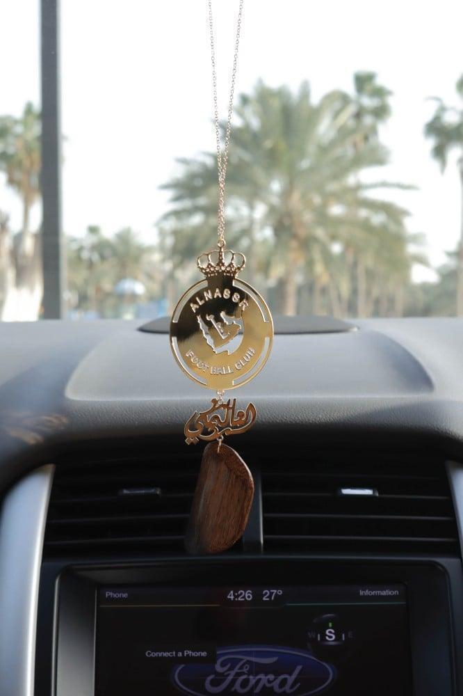 اجعل سيارتك تعكس شخصيتك مع تعليقة مخصصة تحمل اسمك وشعار ناديك المميز, بمواد عالية الجودة وتصميم احترافي, بفضل تصميمها المطلي بالذهب توفر لمسة مميزة تلفت الأنظار إليك, مع احساسك بالانتماء.