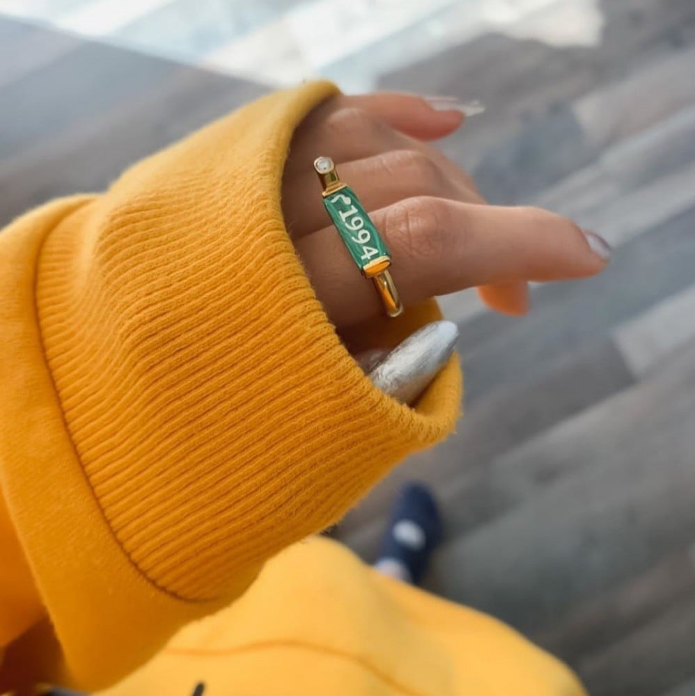 يمكنك طلب الخاتم بالتاريخ اللي تبيه الخاتم مصنع من الفضه الايطاليه عيار 925 مع امكانية تغير لون الحجر