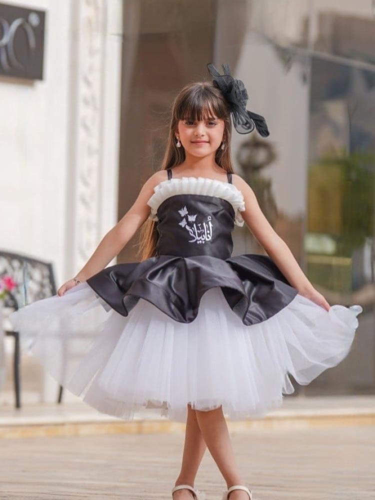فستان العيد بناتي مطرز بالاسم الاكثر مبياً