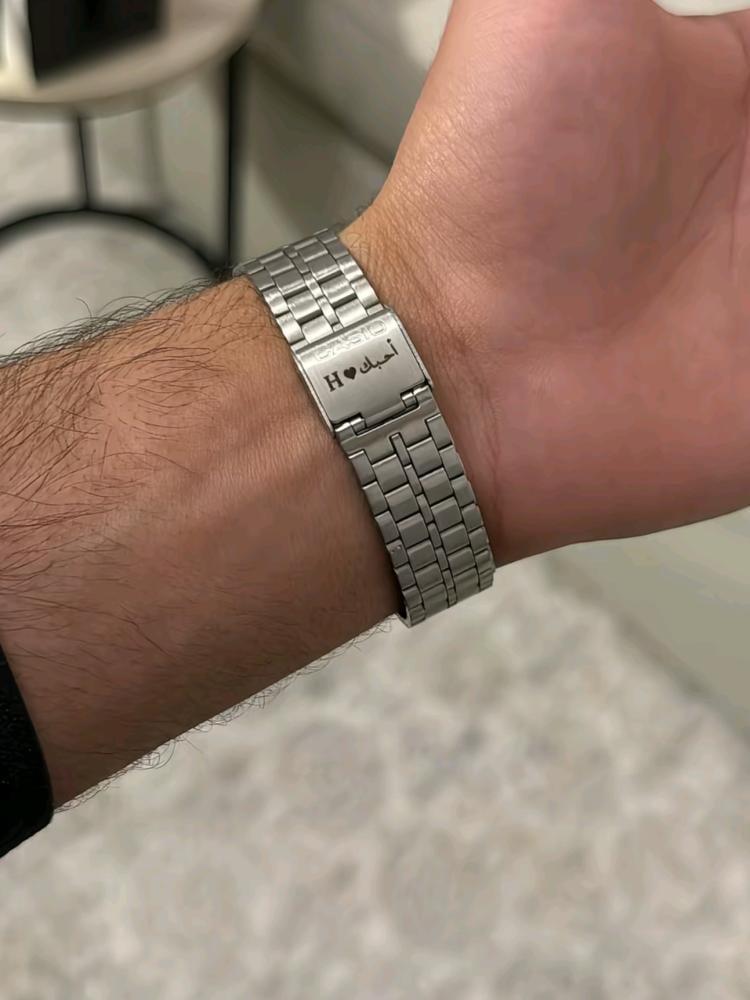 ساعة كاسيو LTP بلون التيتانيوم الفاخر، يمكن حفر الاسم أو العبارة التي تفضلها لتصبح هدية مميزة تدوم مع الزمن.