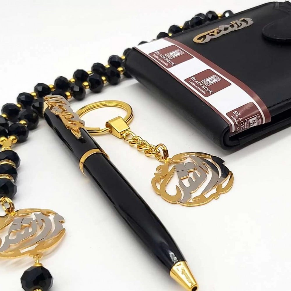 طقم رجالي مثالي مكون من 4 قطع خلابة (قلم، سبحه، ميدالية، بوك) بحيث يكون أروع هدية يقدمها العميل للشخص الذي يحبه، فالطقم مصمم بعناية فائقة لينال إعجاب كافة عملاؤنا، والطقم له موديلات متنوعة يستطيع أن يختار العميل منها ما يناسبه ويناسب أصدقائه.