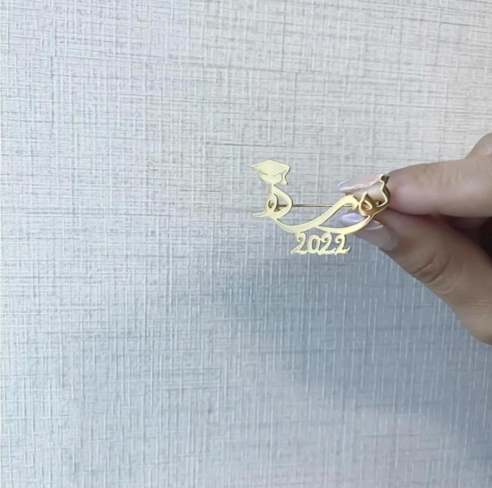 مكونة من بروش يصمم حسب الطلب بالإسم والتاريخ ويطلى بماء الذهب او الفضة، ويوضع بعلبة فخمه وكرتون أنيق.