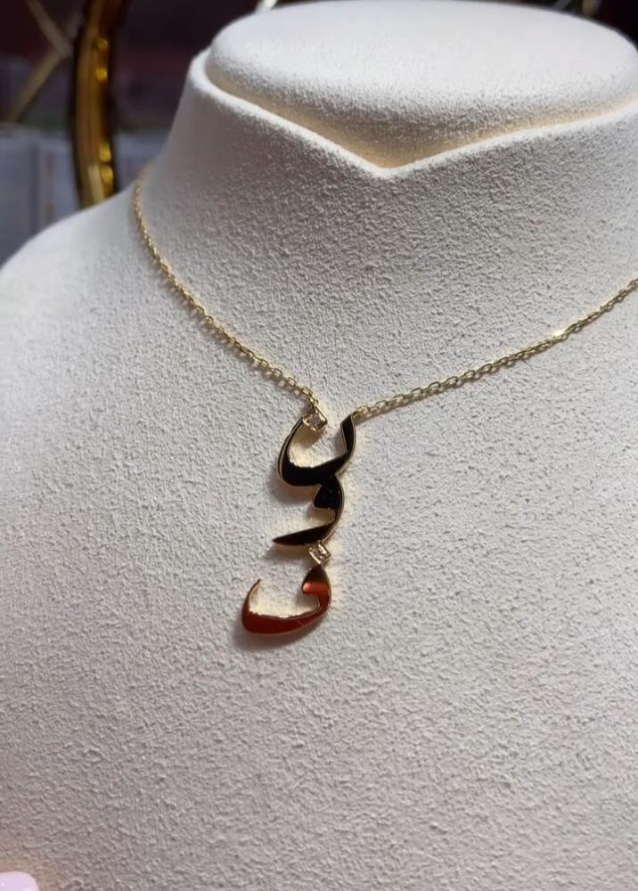 سلسال بالاسم مطلي بالذهب حسب الطلب تشكيلة قلب
