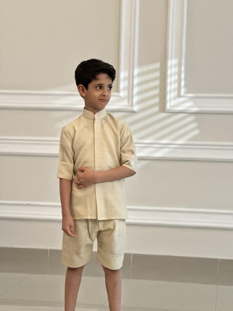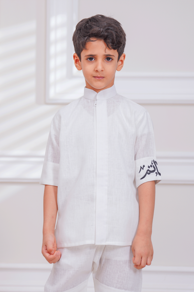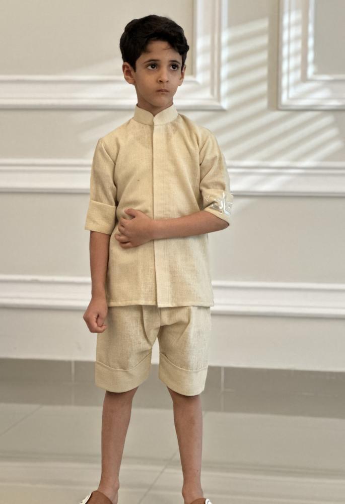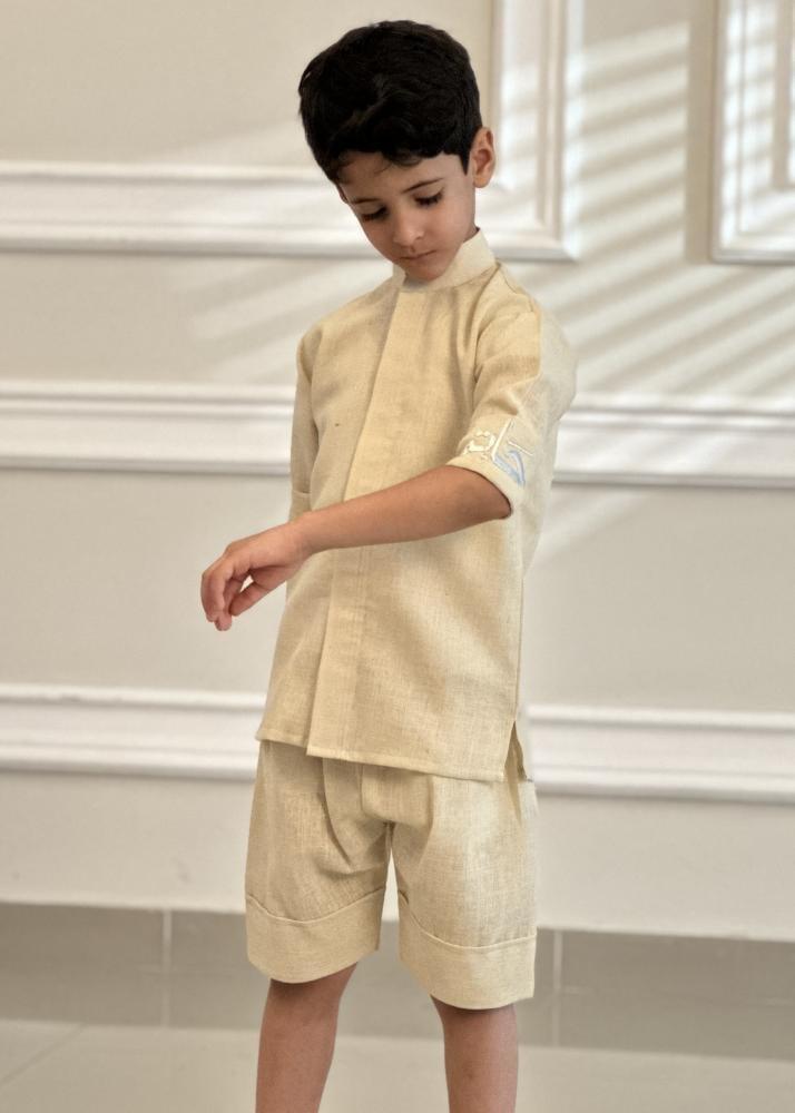 طقم ولادي قميص مع شورت مطرز بالاسم