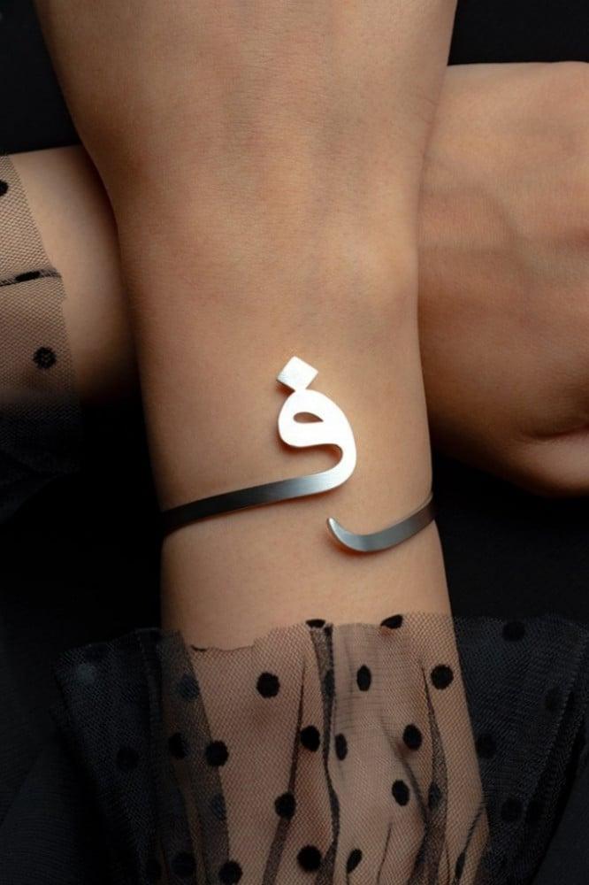 أسورة مستوحاه من جمـال الخـط العـربي بحرفك أو حرف من تحب وممكن تقديمها كهدية مميـزه وفريده من نوعها من ميسون.