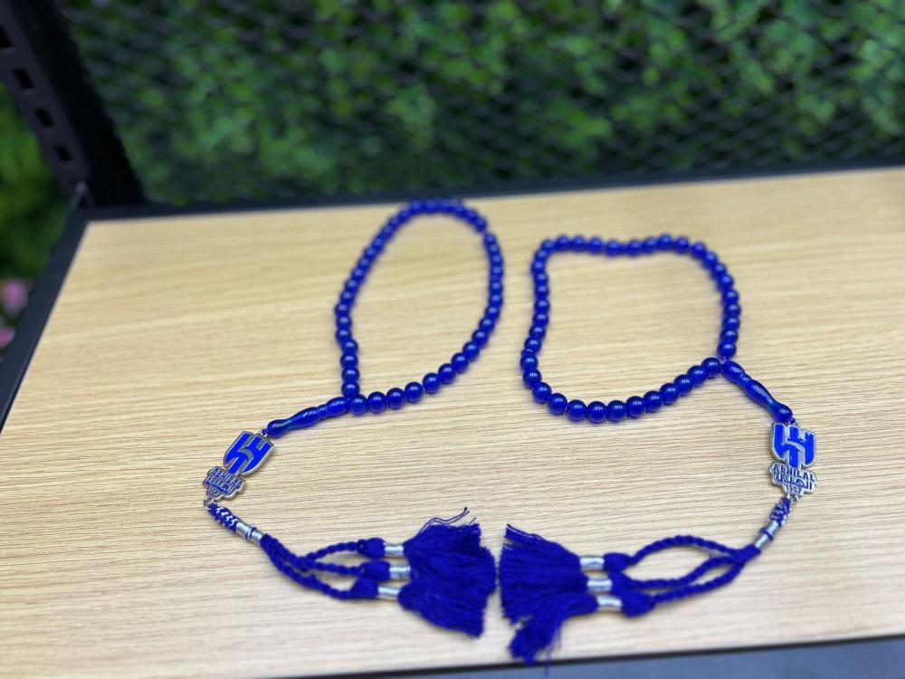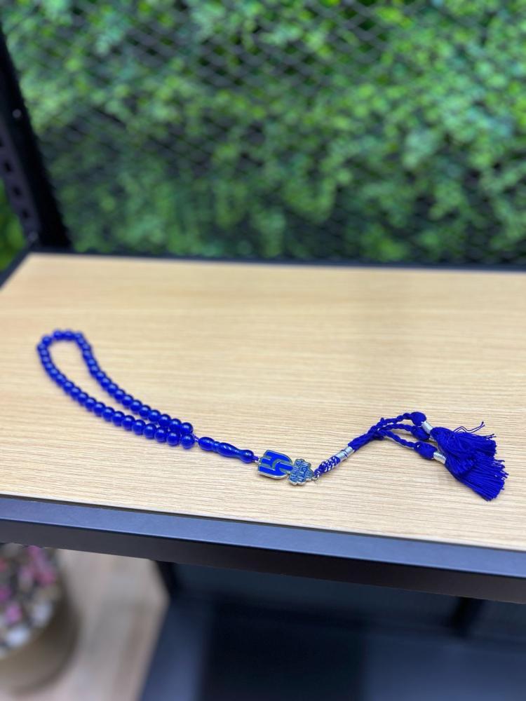 تتكون السبحة من 33 حبة زرقاء لامعة.