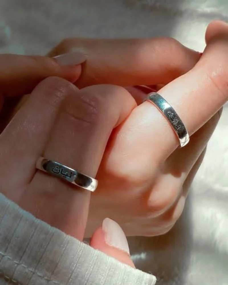 خاتم فضه مع كتابه الاسم او تأريخ الميلاد او ذكرى الزواج