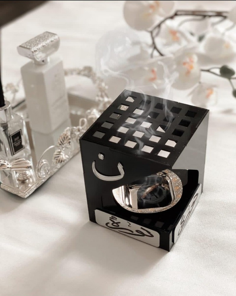 مبخرة مودرن مصنوعة من الأكريليك الأسود اللامع و الأكريليك الذهبي الانيق. تم دمج اللونين ب اسلوب عصري و أنيق.