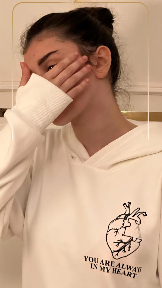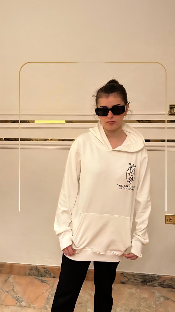 هودي ليحتضنك دائمًا - تصميم القلب مع الحرف فتحت اصبع ابيض من متجر ميسون