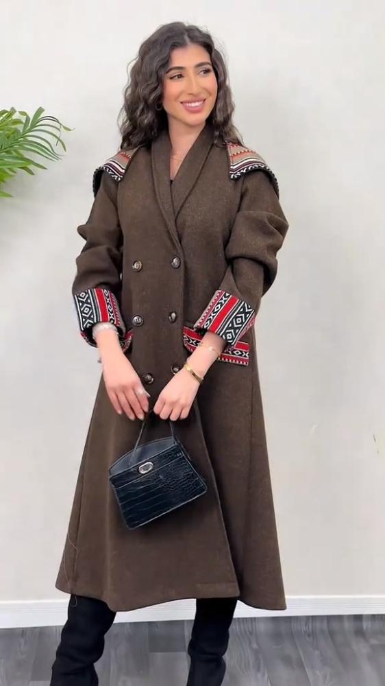 جاكيت شتوي طويل بنقشة سدو فخمة